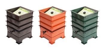Worm Factory Includes: 3 Stacking Trays Collection Base Ventilated "Quick Tips" Lid Coir Brick Worm Bedding 16-Page Instruction Book Accessory Kit Built in leachate (liquid fertilizer) collector tray Spigot for easy draining (Some Assembly Required)  |